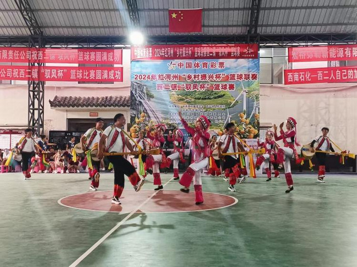 这个被西二镇人念叨了一整年的村BA决赛夜,把云南中烟红云红河集团红河卷烟厂帮扶建设的篮球场,变成了最热闹的“民族团结大舞台”。